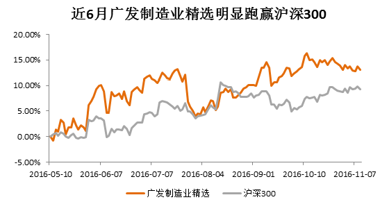 在当前经济转型、产业升级的背景下,中国正逐步由制造业大国向制造业强国转变。10月财新中国制造业PMI大幅升至51.2,创2014年7月以来新高。受益于制造业加速回暖,企业盈利预期改善,广发制造业精选混合近6月收益12.24%,在A股反弹行情中表现优异。
