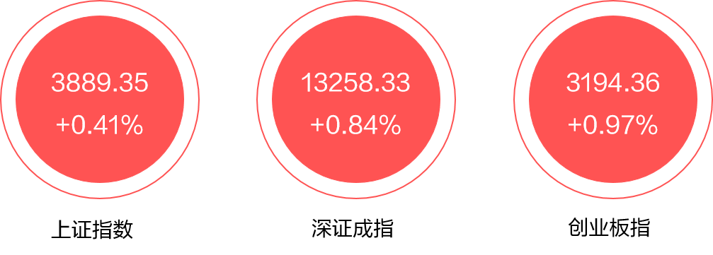 市场全天呈现震荡上行态势,三大指数全线收红。截至收盘,上证指数涨0.41%,报3889.35点,深成指涨0.84%,报13258.33点,创业板指涨0.97%,报3194.36点。沪深两市成交额2.09万亿,较上一个交易日放量2351亿。盘面上,市场热点快速轮动,全市场涨跌家数接近持平。从板块来看,商业航天概念延续强势,可控核聚变概念走强,电网设备概念快速拉升,半导体设备股反复活跃。下跌方面,零售概念下挫。板块方面,有色金属、电子、电力设备等板块涨幅居前,商贸零售、建筑材料等板块跌幅居前。