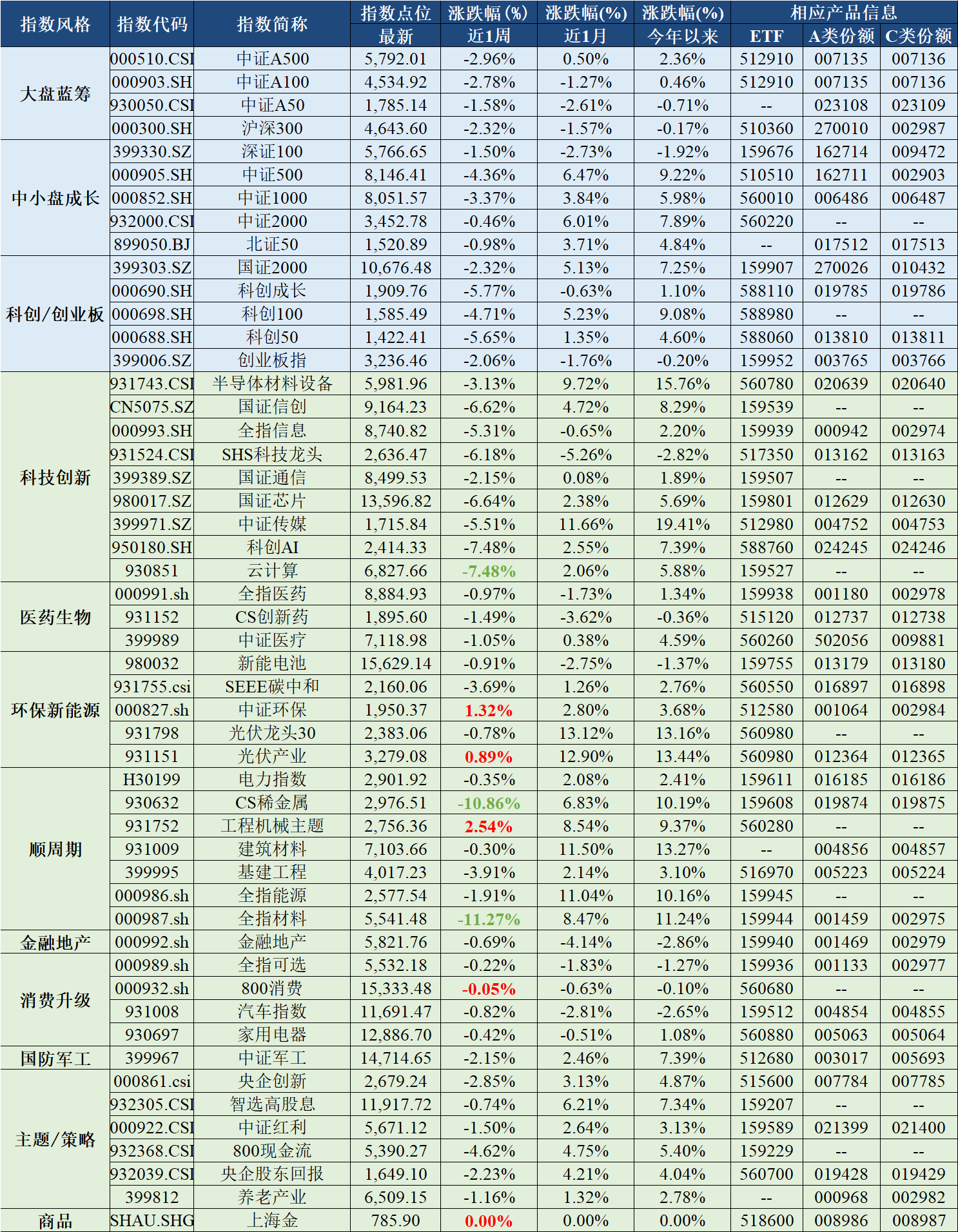 在板块表现方面,创业板综下跌1.91%,深证综指下跌1.27%,上证指数下跌1.27%,中小综指下跌0.36%。规模指数方面,中证1000指数下跌2.46%,中证500指数下跌2.68%。