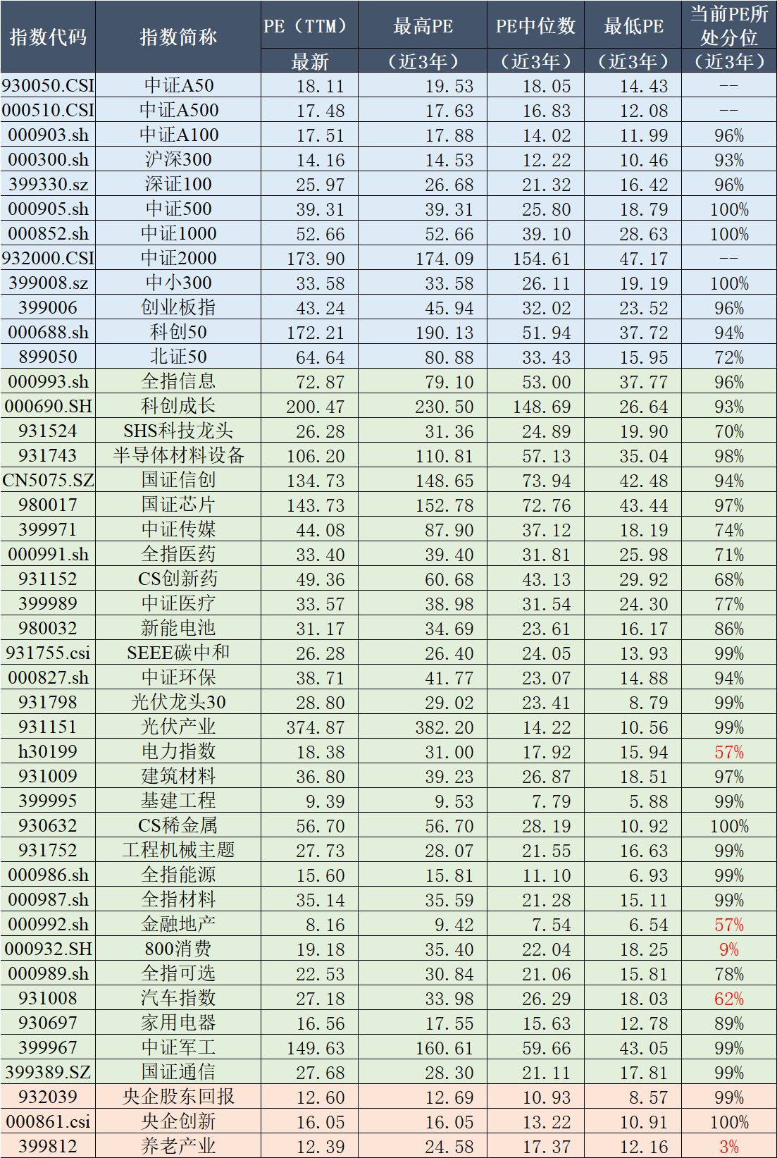 旗下产品跟踪指数近三年PE情况及当前所处位置